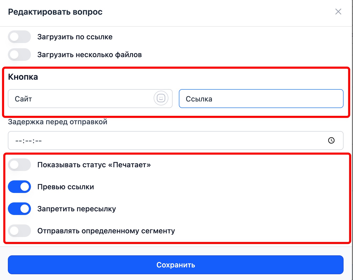 - Показывать статус «Печатает» — для имитации общения с реальным человеком;