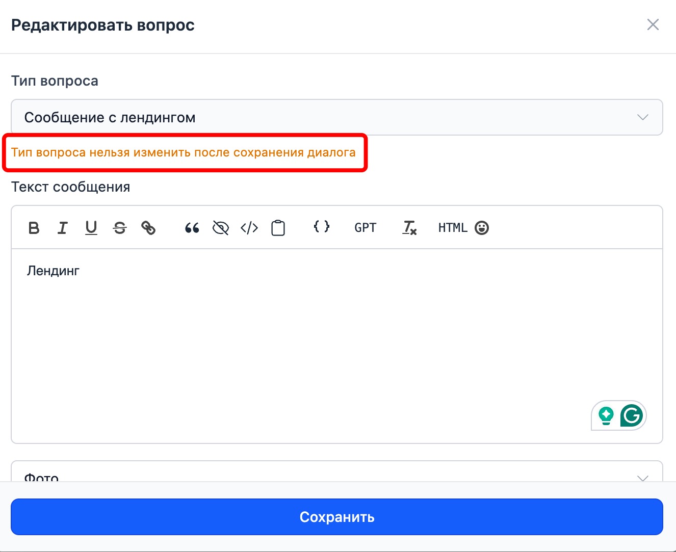 После сохранения диалога тип сообщения изменить нельзя.