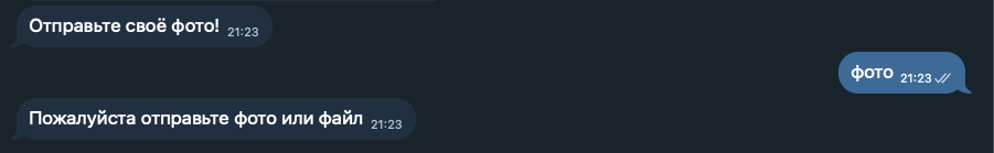 Система не будет реагировать на текстовые сообщения — только на файлы или фотографии.