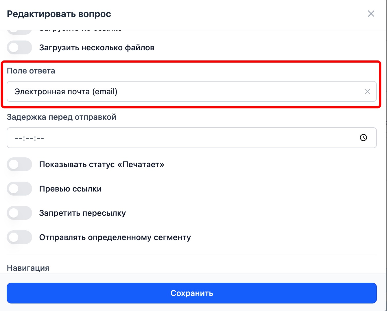 - Оставляем вариант «Электронная почта (email)» в графе «Поле ответа».