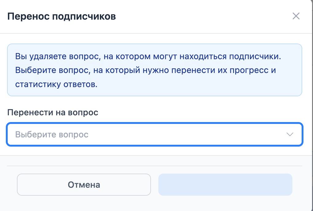 Удаление сообщения возможно только с обязательным указанием, на какой следующий вопрос будут переведены подписчики.