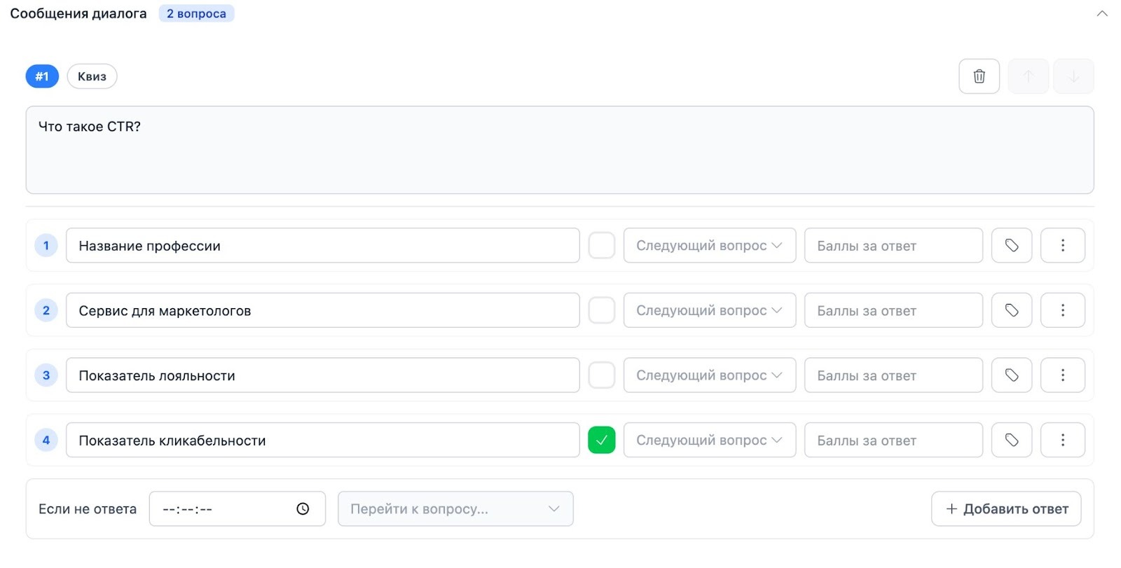 Благодаря этой функции для каждого варианта ответа можно задать индивидуальный следующий шаг.