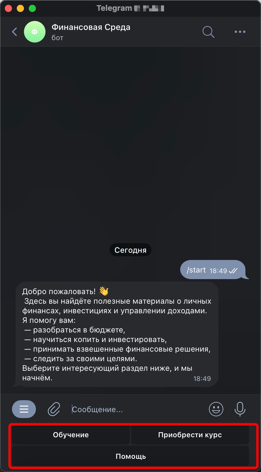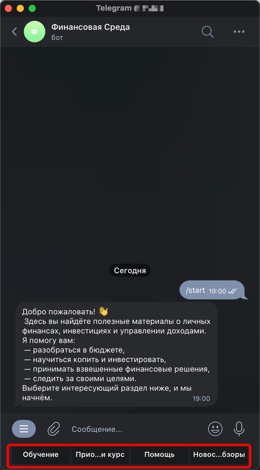 Кнопки навигации — это интерактивное меню в нижней части интерфейса бота, которое помогает пользователю быстро переходить между основными разделами.