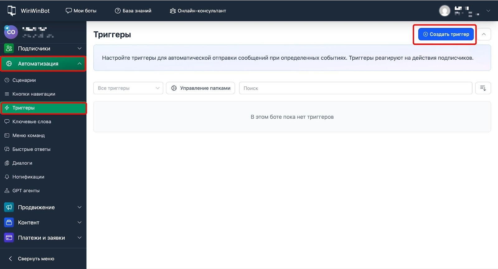- Нажимаем Создать триггер.