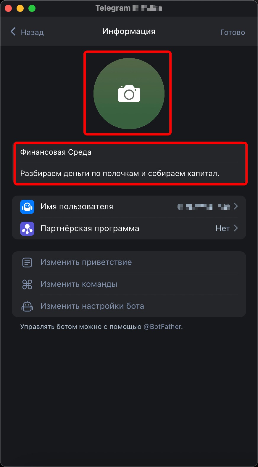 Имя бота, аватар и краткое описание можно изменить напрямую через профиль бота в Telegram. Открываем бота, нажимаем на его имя в верхней части экрана, затем нажимаем кнопку Изменить (три точки в правом верхнем углу). Выбираем нужный параметр и вносим изменения. Этот способ работает быстрее, чем через @BotFather, но доступен только для основных настроек.