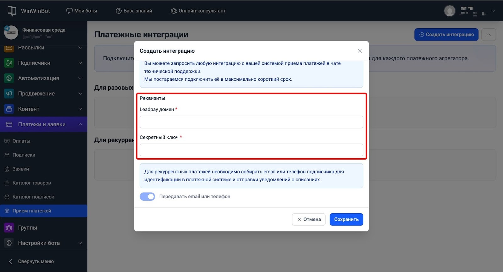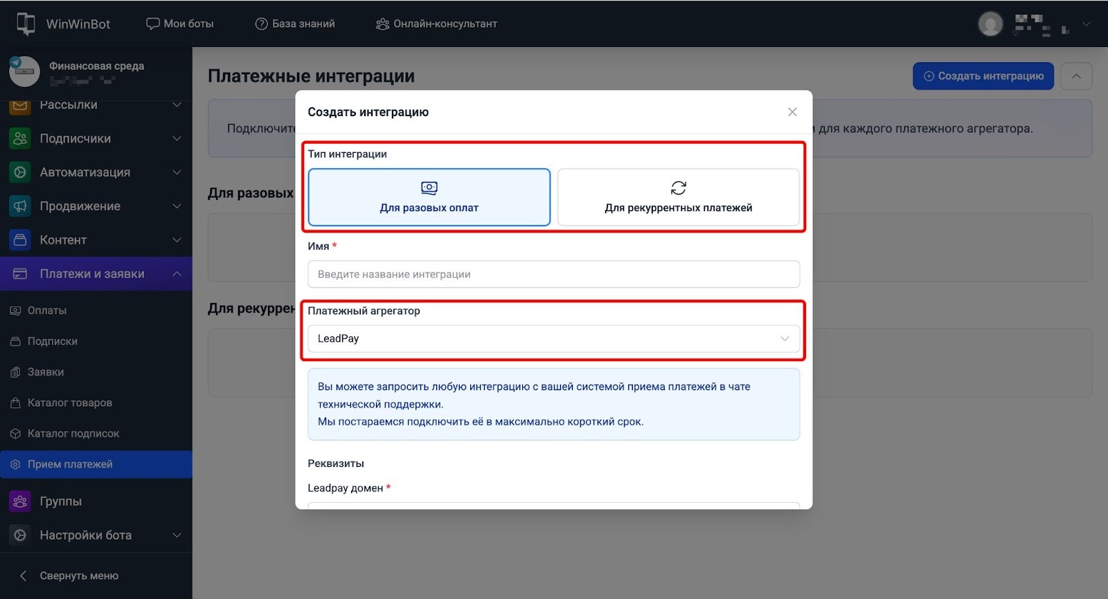 Платёжные интеграции WinWinBot