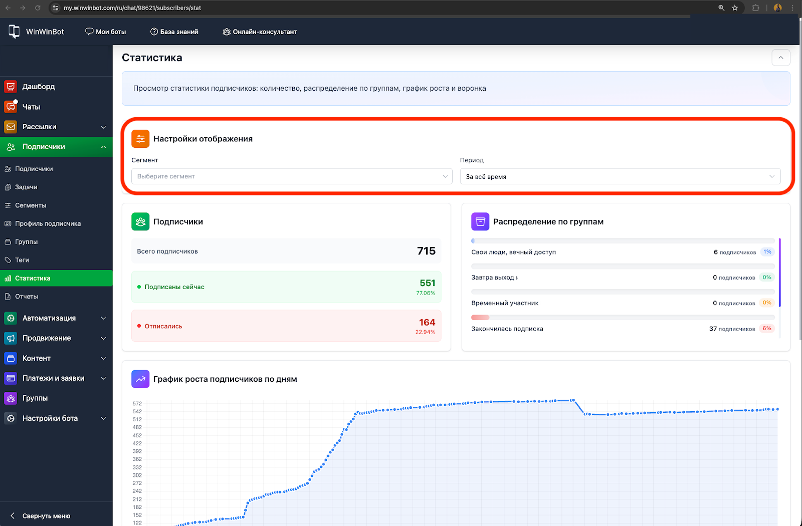 Выявление оттока: Отслеживайте процент отписавшихся — если он растёт, пересмотрите контент или частоту сообщений.
